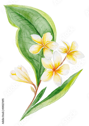 © Kisika, Naklejka premium Plumeria Watercolor Plant