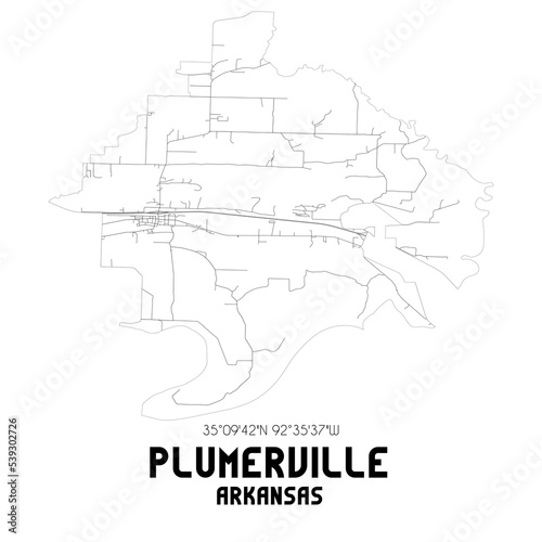 Obraz premium Plumerville Arkansas. US street map with black and white lines.