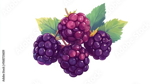 © Rabiyah, Fototapeta premium Plump blackberries in a bunch, displayed on white background for natural vibes