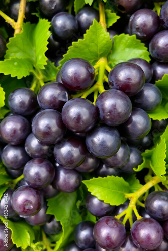 © Morepic, Fototapeta premium plump grapes with a purplish-black hue, some still on the stem.