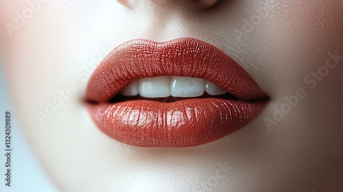 © Sang, Obraz premium Plump lips gently touching face close-up lip augmentation & cosmetic treatments effects for beauty.