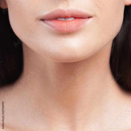 Obraz premium Plump sensual lips of young beautiful woman close up