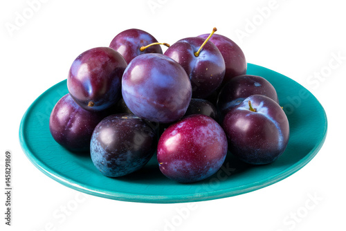 © EmBaSy, Fototapeta premium Plums on green plate close-up