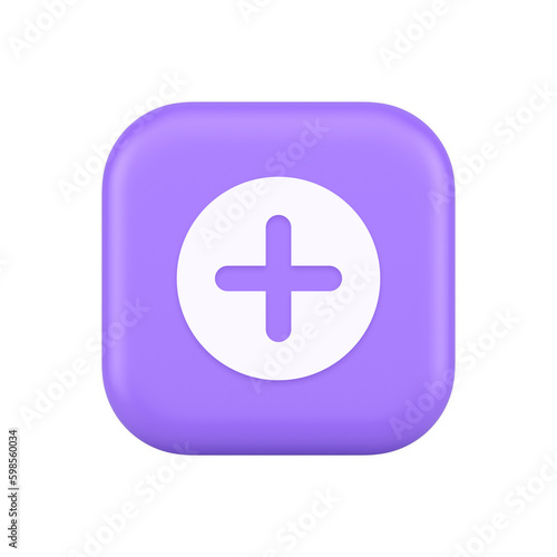 Fototapeta premium Plus add button mathematical addition symbol 3d realistic icon