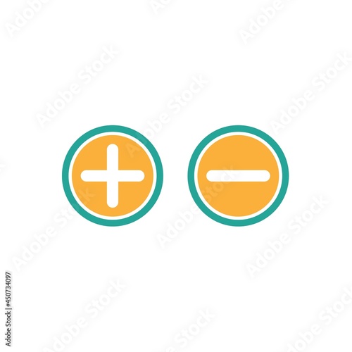 Fototapeta premium plus and minus circle flat vector icons isolated on white. Add or plus...