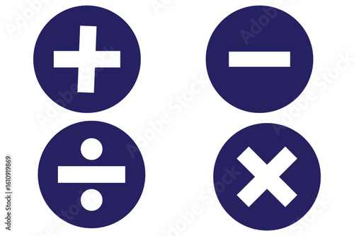 Fototapeta premium Plus and minus icon set. Math symbol. Plus icon, Minus icon, Multiply icon, Divide icon