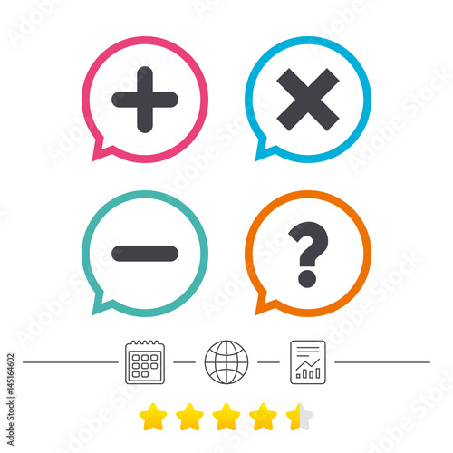 © blankstock, Fototapeta premium Plus and minus icons. Question FAQ symbol.