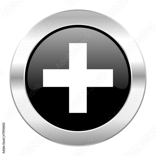 © Alex White, Obraz premium plus black circle glossy chrome icon isolated