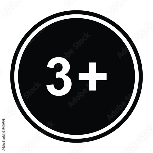 Fototapeta premium 3 plus icon. black vector 3 + plus sign