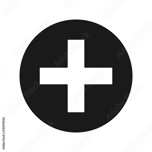 © Bluejayy, Obraz premium Plus icon flat black round button vector illustration