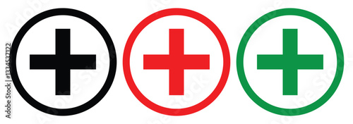 © Creativus Illustria, Obraz premium Plus icon set. Addition symbol. Cross sign isolated. First aid symbol. Vector illustration