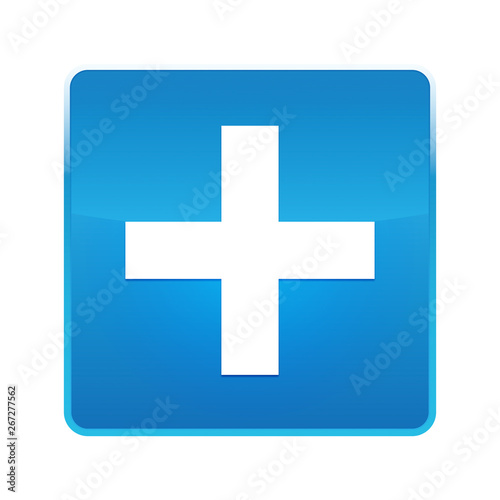 Fototapeta premium Plus icon shiny blue square button