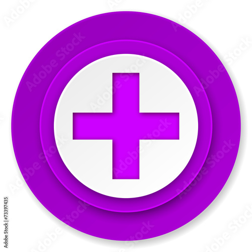 © Alex White, Obraz premium plus icon, violet button, cross sign.