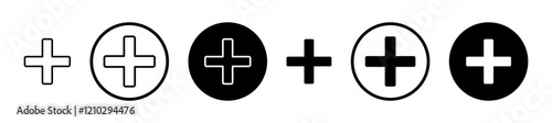 © Ranveer, Fototapeta premium Plus icons set in black filled and stroke line style