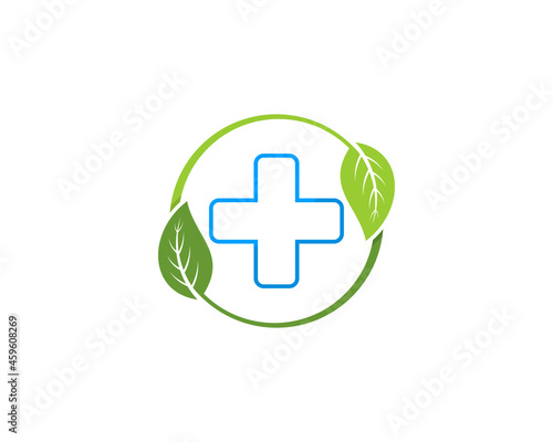 © Jefry Maviskho, Obraz premium Plus medical symbol in the circle leaf