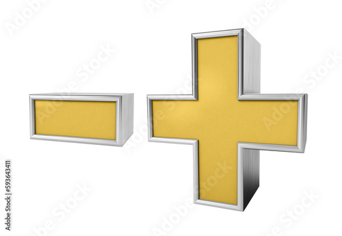 Obraz premium Plus minus 3d isolated on white background. Gold and silver Plus minus 3d. Plus and minus icon 3d. 3d rendering