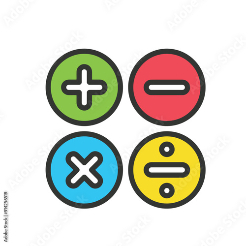 Fototapeta premium Plus Minus Multiple Division Math equations icon vector illustration