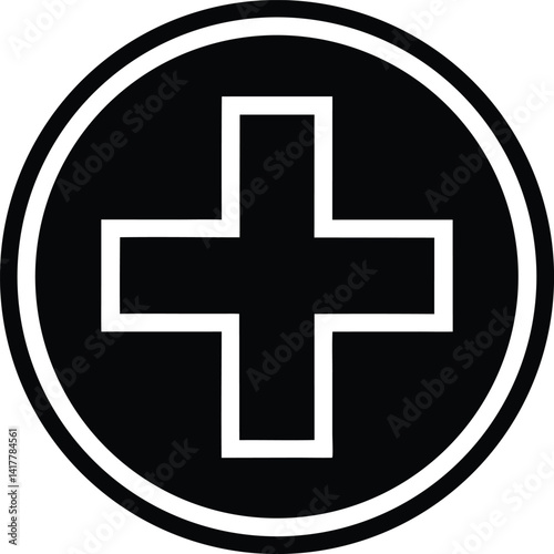 Obraz premium Plus Sign Circle Silhouette Black Vector | Add Symbol Icon for UI, Print, Cut Files, and Digital Projects