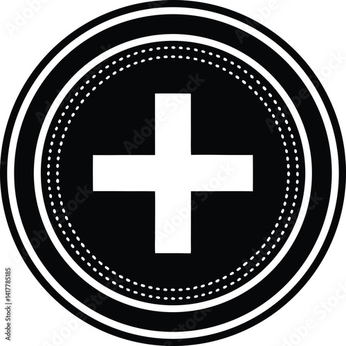 Obraz premium Plus Sign Circle Silhouette Black Vector | Add Symbol Icon for UI, Print, Cut Files, and Digital Projects