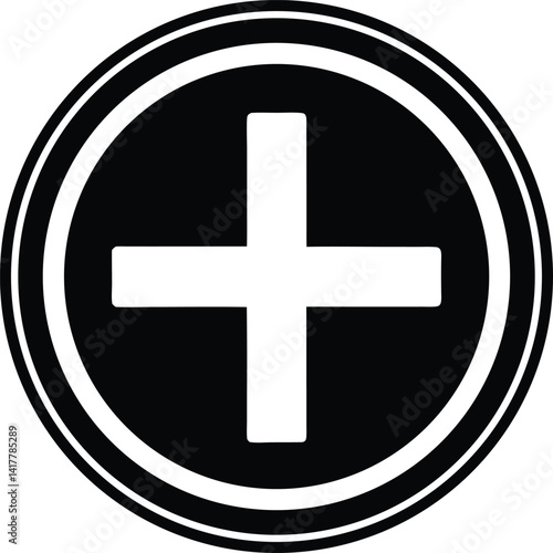Obraz premium Plus Sign Circle Silhouette Black Vector | Add Symbol Icon for UI, Print, Cut Files, and Digital Projects