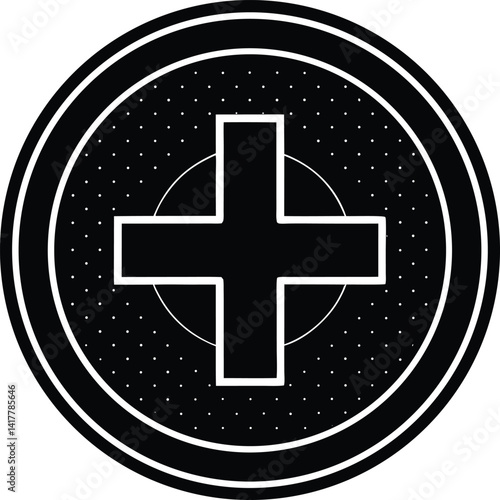 Obraz premium Plus Sign Circle Silhouette Black Vector | Add Symbol Icon for UI, Print, Cut Files, and Digital Projects