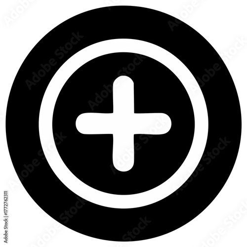 Fototapeta premium Plus sign icon inside a white circle with a black outline, and in a black circle.