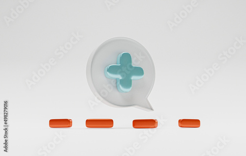 © Dilok, Obraz premium Plus sign inside message box and minus drop on floor for positive and negative thinking mindset and attitude concept by 3d render.
