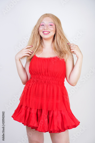 Naklejka premium Plus size asian fashion model in red dress