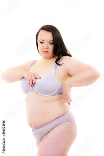 Obraz premium Plus size belly fat woman in lingerie