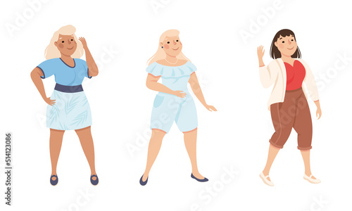 © topvectors, Naklejka premium Plus Size Woman Standing and Smiling Accepting Their Physical Body Vector Set