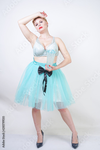 Naklejka premium plus size woman with short hair wear bra and tutu skirt
