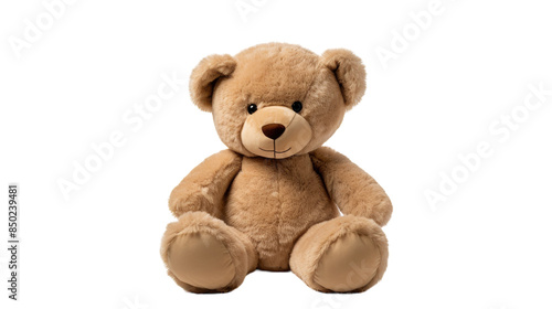 © Hafsa, Obraz premium Plush Brown Teddy Bear Sitting on White Background