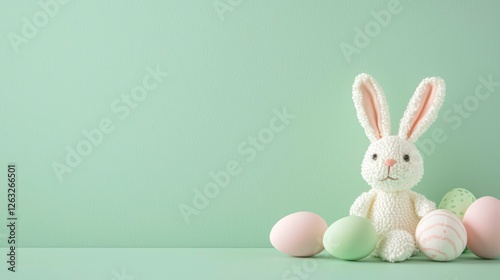 © Grapy Media, Obraz premium Plush Bunny with Easter Eggs Holiday Celebration Display