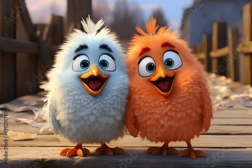 © bravissimos, Fototapeta premium Plush fur birds monster for little kids. Front view of soft animal toy mascot.