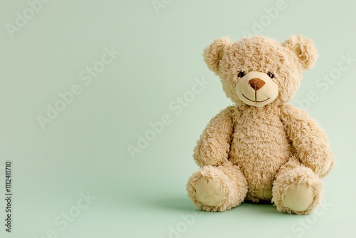 © Boris, Obraz premium Plush teddy bear on mint background with space for text