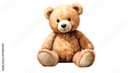 Fototapeta premium Plush teddy bear, tan fur, sitting upright