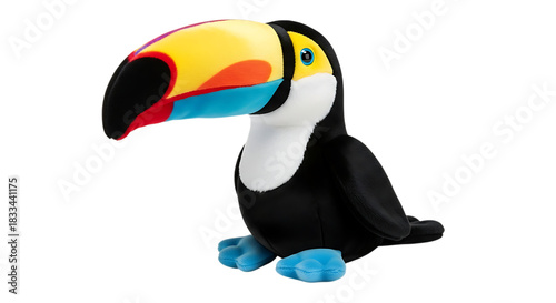 © PixelVista, Fototapeta premium Plush Toucan Toy with Large Colorful Beak and Black Body bird plush toy