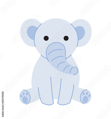 © Aleksey, Naklejka premium Plush toy concept. Grey elephant. African wildlife amd fauna. Pretty soft animal for children. Fun and entertainment for kids. Flat vector illustration