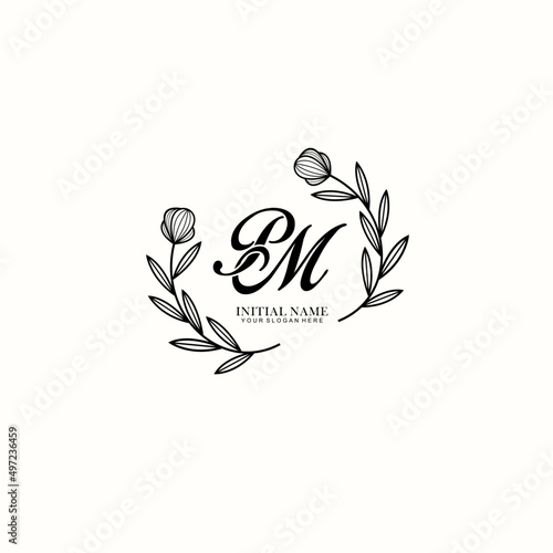 Fototapeta premium PM Initial letter handwriting and signature logo. Beauty vector initial logo .Fashion boutique floral and botanical