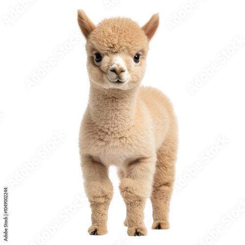 © chic designs, Fototapeta premium 白い背景に立つ愛らしいふわふわのアルパカ - 透明な背景の png