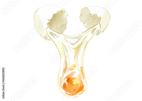 © calmspring, Obraz premium 割られた透明な生卵の手描き水彩イラスト(透過PNG)