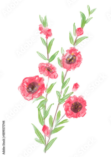 © calmspring, Obraz premium 咲き誇るギョリュウバイの花の手描きの水彩イラスト(透過PNG)
