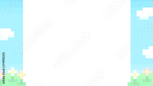 Fototapeta premium ピクセルアートな青空とお花フレーム⭐︎PNG