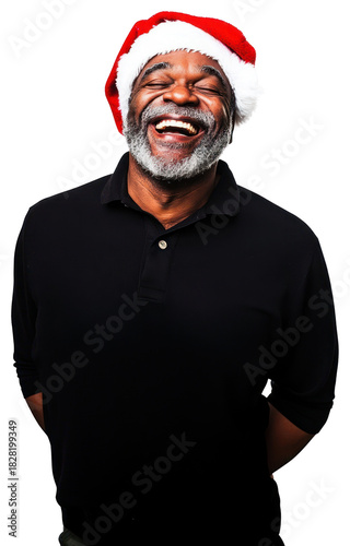 Fototapeta premium PNG A happy old black man wearing a christmas hat laughing photography...