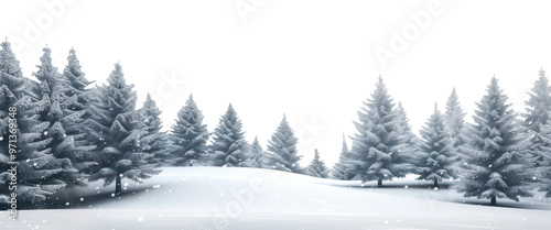 Naklejka premium PNG A snowy landscape with many pine trees covered in snow pines scenery nature.