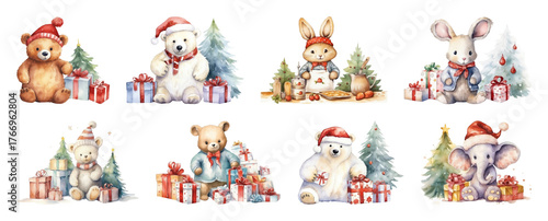 © Rawpixel.com, Fototapeta premium PNG Adorable festive animal illustrations, element set on transparent background