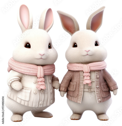 © Rawpixel.com, Obraz premium PNG Adorable rabbits in winter clothes