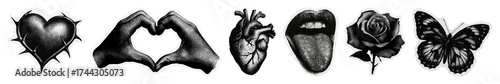 Obraz premium PNG Artistic monochrome tattoo designs, element set on transparent background