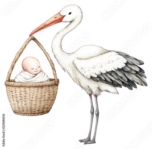 © Rawpixel.com, Fototapeta premium PNG Baby basket illustration newborn.