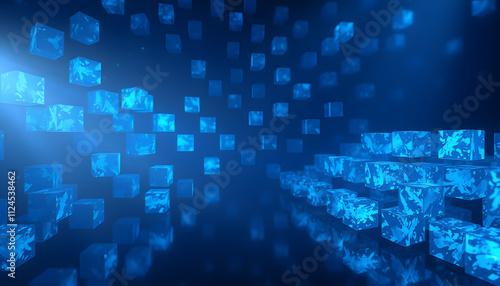 © Sergey, Obraz premium Png background with blue cube patterns, crayon drawing